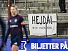 Rosengårds lagkapten Thea Sørbo framför den tomma ståplatsläktaren där klacken satt en banderoll med texten ”Hejdå! - hellre B-lag än bolag” under måndagens match mellan FC Rosengård och Hammarby (0–4) på Malmö IP.