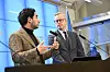 Socialdemokraternas ekonomisk-politiska talesperson Mikael Damberg (S) och arbetsmarknadspolitiska talesperson Ardalan Shekarabi (S) presenterar en nyhet.