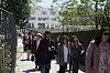Människor lämnar en domstol i Aten sedan en man öppnat eld på platsen.