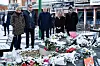 Finansminister Elisabeth Svantesson (M), justitieminister Gunnar Strömmer (M), Rickard Livén (M), oppositionsråd i Salems kommun, och (längst till höger) Arne Närström (S), kommunstyrelsens ordförande i Salems kommun, besöker minnesplatsen vid Rönninge torg i Salem på nyårsafton.