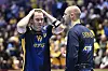 Sveriges Felix Claar och Lukas Sandell efter oavgjort mot Ungern i handbolls-EM i Malmö arena.