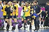 Sverige, här med veteranstjärnan Jamina Roberts och förbundskaptenen Tomas Axnér, besegrade Sydkorea med 32–27. Men det var redan före matchen klart att Sverige missar kvartsfinalen i VM.