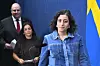 Utbildnings- och integrationsminister Simona Mohamsson (L), kulturminister Parisa Liljestrand (M), och Patrick Reslow, skolpolitisk talesperson för Sverigedemokraterna, under en pressträff i september.