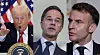 USA:s president Donald Trump, Natos generalsekreterare Mark Rutte och Frankrikes president Emmanuel Macron. Arkivbilder.
