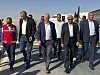 De amerikanska senatorerna Jeff Merkley (tvåa från vänster i bild) och Chris Van Hollen (trea) står bakom ett krav om utredningar av misstänkta krigsbrott i Gaza. Här är de på besök vid gränsövergången Rafah i augusti i år.