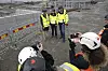 Jim Rowan, dåvarande vd för Volvo Cars tillsammans med Novo Energys vd Adrian Clarke och Northvolts dåvarande vd Peter Carlsson vid den officiella byggstarten av batterifabriken i Torslanda, i mars 2024.