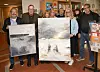Lennart ”Lelle” Eriksson, Krister Sund, Anna Lind Bengtsson, Gun-Mari Lindholm, Bo-Sture Sjölund, Monica Toivonen, Erica Dunder med hunden Mille (även om det mest är öronen som syns på bilden) och Guy Dannström är taggade inför årets cancergala. Tavlorna som visas upp är målade av Bo Torgé (vänster) och Anna Lind Bengtsson (höger).