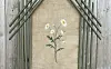 Brasskärm i jugendstil tillverkad av ribbor som inramar ett broderat mittstycke. Okänt ursprung. Skärmen fotograferad på den åländska landsbygden vid en lösöresauktion sommaren 2014.Foto: