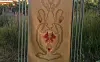 Brasskärm av målad plåt på metallfötter. Tillhör Rainer Kronstam, Tärnebolstad.Foto: