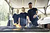 Felicia Eriksson och Leona Ölander hjälper till på Västerro under helgen. Sebastian Ölander sköter grillningen av det åländska köttet.Daniel Eriksson