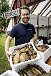 André Westerberg säljer flundror på familjegården Västerro. Den första timmen de har öppet på fredagen brukar det gå åt flera kilo.Daniel Eriksson