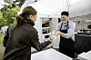Vilma Andersson passar på att äta lunch i Söderby, Lemland. Den serveras av Harry Silverstrand.Daniel Eriksson