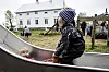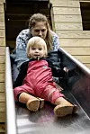 På Mickels gård i Gottby, Jomala finns massor att göra för barnen. Vivi och Maja Degerth har det roligt i rutschkanan.Daniel Eriksson
