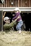 Ebba Klingvall Bäckman är bara tre år – men höjdrädd är hon inte. Om och om springer hon fram och tillbaka på höbalarna på Mickels gård.Daniel Eriksson