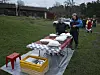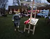 Ett av IFK:s juniorlag deltar i marknaden för att samla in pengar till lagkassan. Maria Rosenqvist får gräva bort lite jord för att få bordet mer plant.Robert Jansson