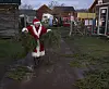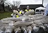 Margarita Andersson lägger ut granris över vattenpölarna. Robert Jansson