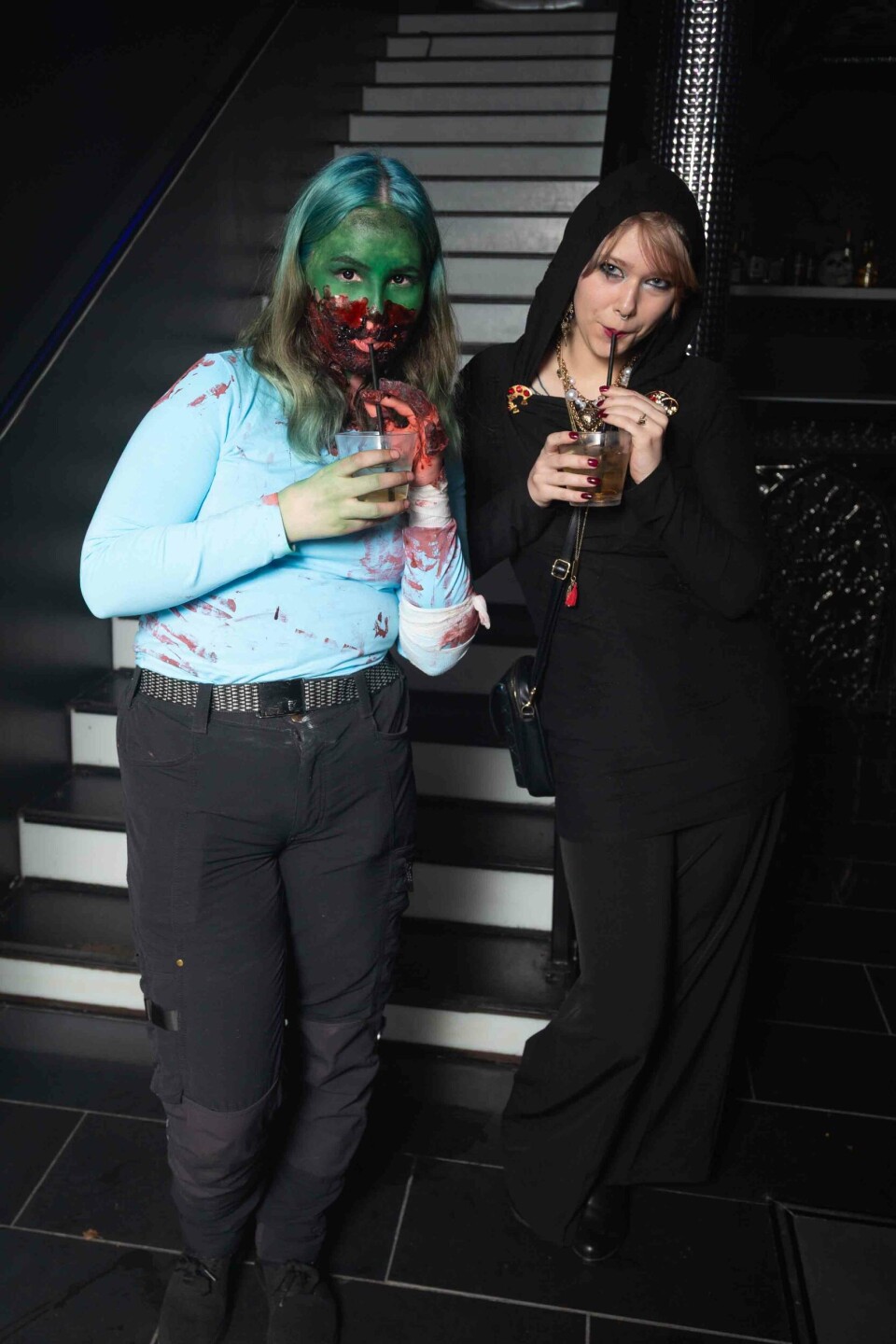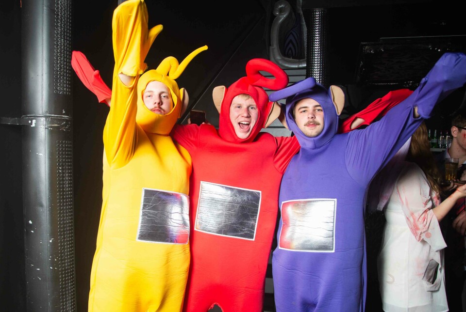 Gästerna klädde sig i många kreativa, mer eller mindre smidiga, utstyrslar på Kinos halloweenfest.