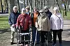 Mikael Carlsson, Viva Holm, Britt-Mari Damsten, Anna Holmström, Ritva Åsbacka, Gullmaj Sandberg och Gunilla Åhlberg är på vårens första vårvandring som Ålands synskadade ordnar.